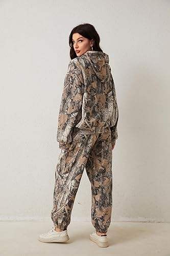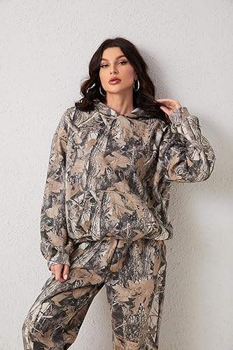 Women's 2-Piece Camo Hoodies Set 25% Cotton 75% Polyester Maple Leaf Print Oversized Sweatshirt for Winter Lounging