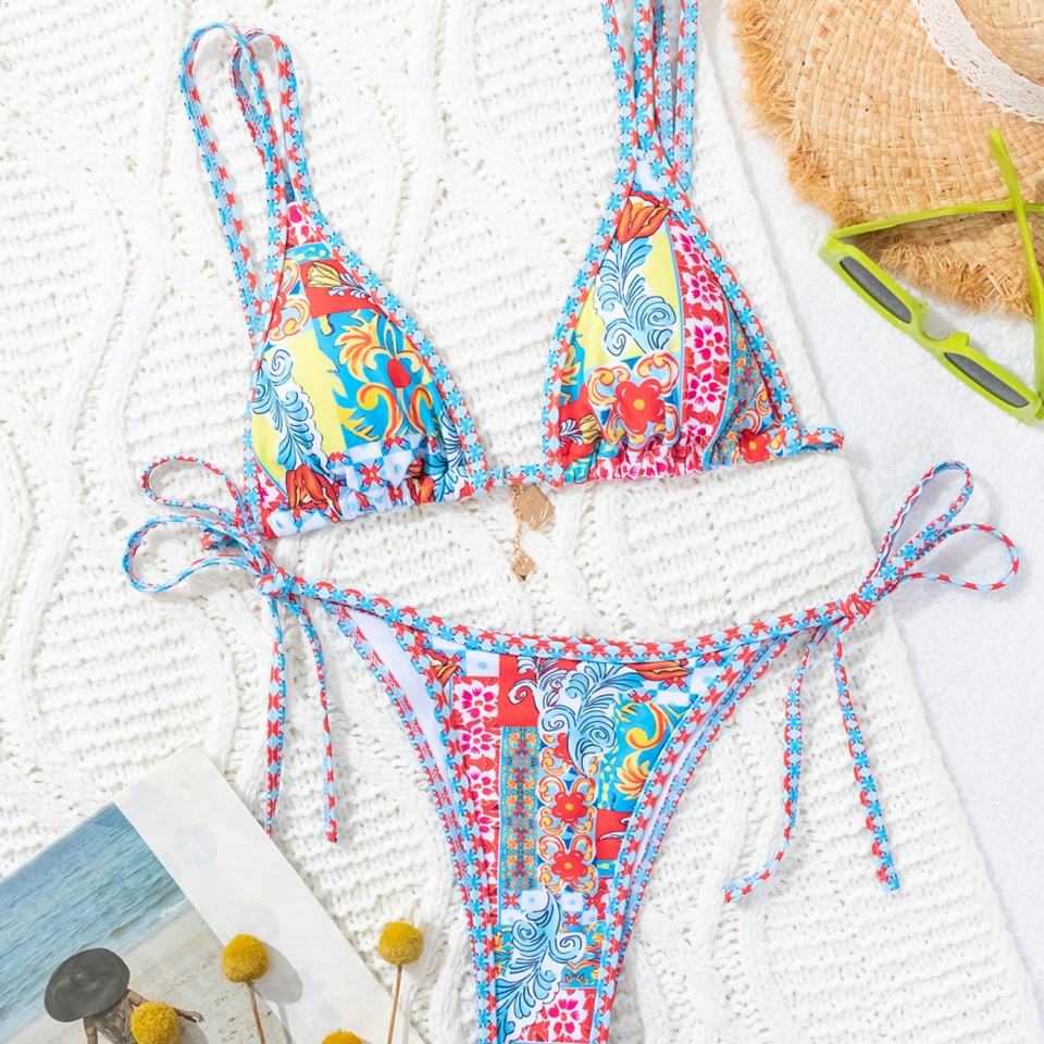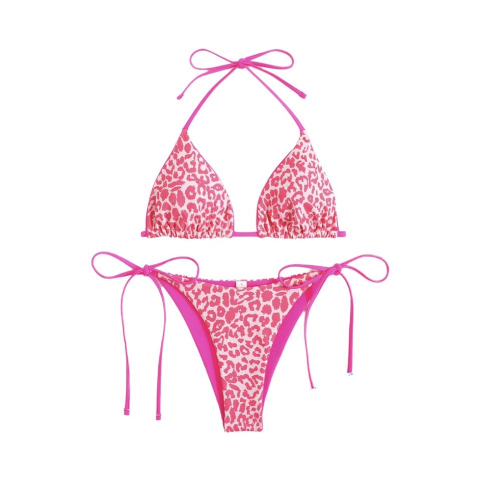 ชุดบิกินี่แบบ 2 ชิ้นสำหรับผู้หญิง ทรงไฮคัท ผ้าสแปนเด็กซ์/โพลีเอสเตอร์ ระบายอากาศได้ดี แต่งลูกไม้สีพื้น พร้อมตกแต่งช่วงเอว ไซส์ XL บวกไซส์