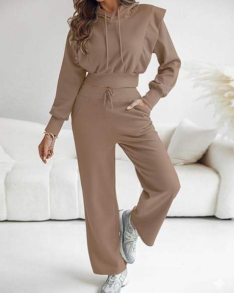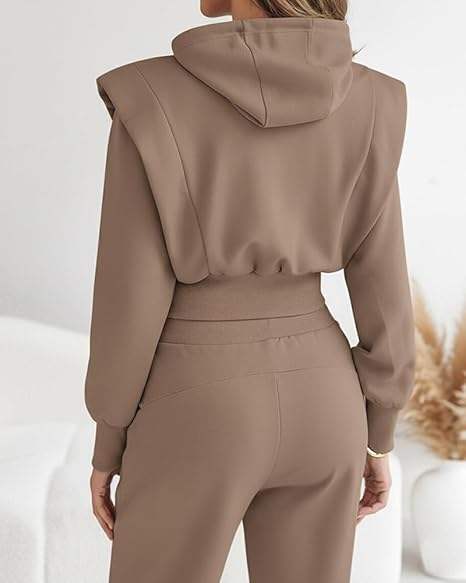 ชุดเซ็ต 2 ชิ้นสำหรับผู้หญิง เสื้อครอปแขนยาวมีฮู้ด ผ้าฝ้าย 100% ODM โลโก้ด้านหน้า เสื้อฮู้ดฤดูหนาว
