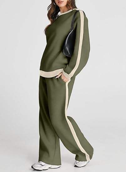 ชุดเซ็ท 2 ชิ้นสำหรับผู้หญิง เสื้อไหมพรมแขนยาว กางเกงขายาวทรงกว้าง ชุดลำลอง ชุดวอร์ม ดีไซน์ทันสมัย สะอาดตา ดูดี มีสไตล์