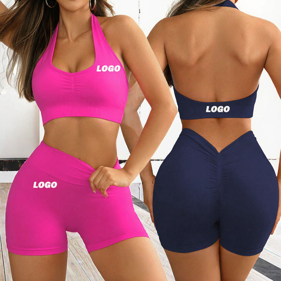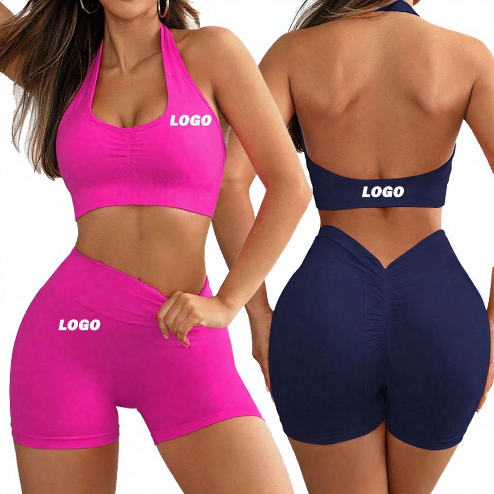 ชุดโยคะไร้ตะเข็บ 2 ชิ้นสำหรับผู้หญิง – กางเกงขาสั้นเอวสูงและเสื้อชั้นในกีฬา ชุดออกกำลังกายน้ำหนักเบาพร้อมดีไซน์รัดสะโพก