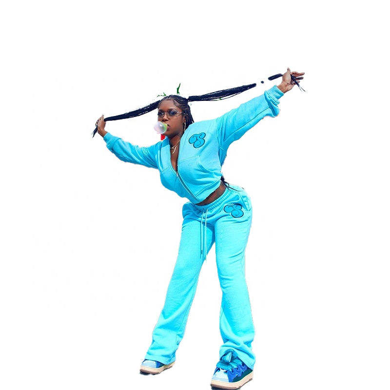 ชุดเซ็ตแทรคสูทสตรี 2 ชิ้น ผ้าปักลายเรียบง่าย เป็นมิตรกับสิ่งแวดล้อม ไม่เป็นขุย สไตล์สตรีทแวร์ ระบายอากาศได้ดี เสื้อแจ็คเก็ตแขนยาวแบบมีซิป