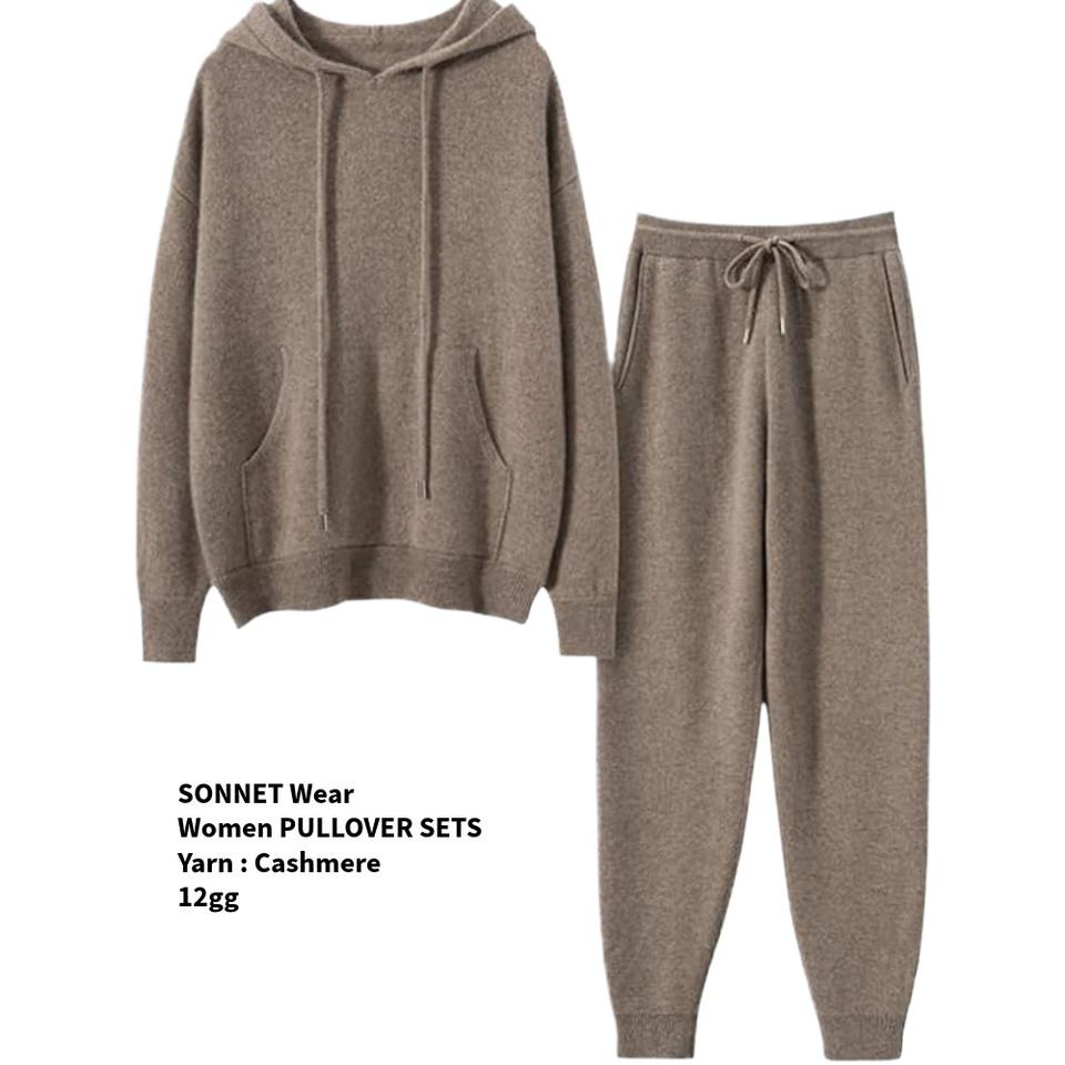 ชุดเซ็ตเสื้อสเวตเตอร์ไหมแคชเมียร์ถักนิตติ้ง 2 ชิ้นสำหรับผู้หญิง แบบหนา อุ่นสบาย ทรงหลวม คอเต่า กางเกงขายาวทรงกว้าง