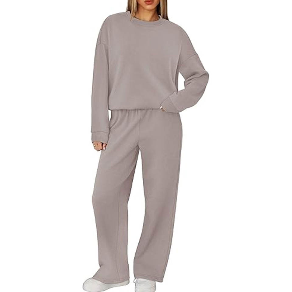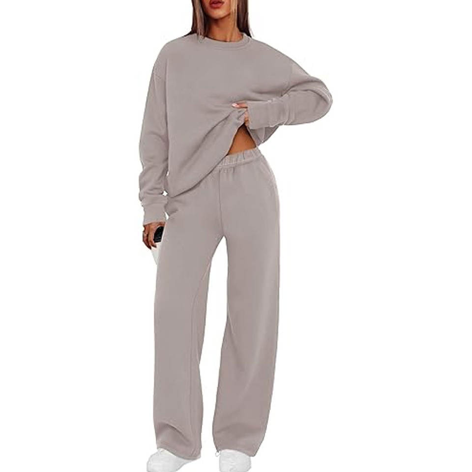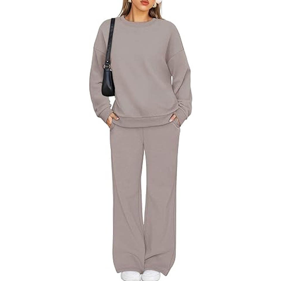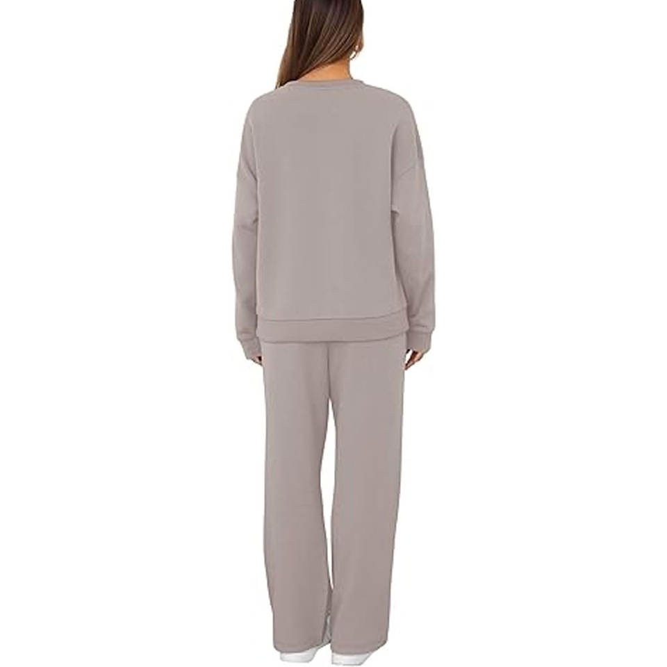 ชุดวอร์มผู้หญิง 2 ชิ้น ผ้าฟลีซกันลม ชุดลำลองเข้าชุด ชุดฤดูหนาว เสื้อผ้าแฟชั่น คอกลม ชุดแทรคสูทลำลอง