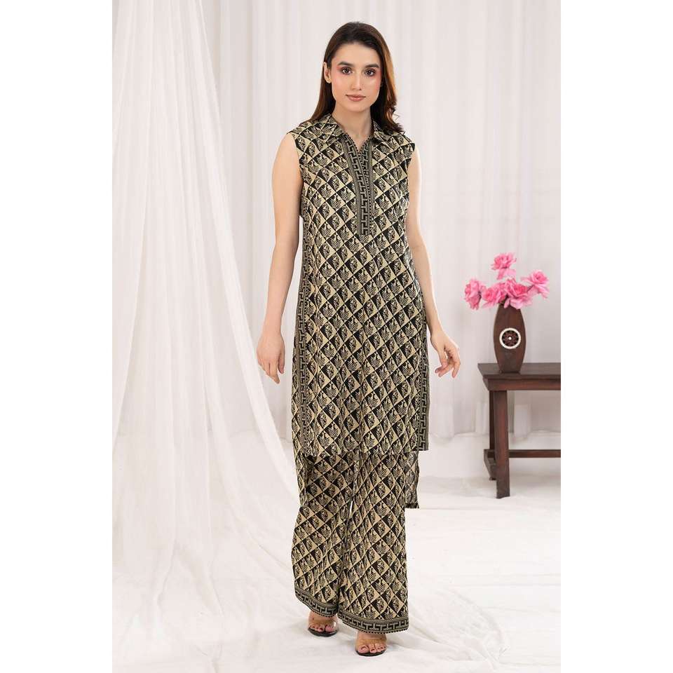 ชุดสูทผ้าลอนพิมพ์ลาย 2 ชิ้น ยังไม่ได้ตัดเย็บ