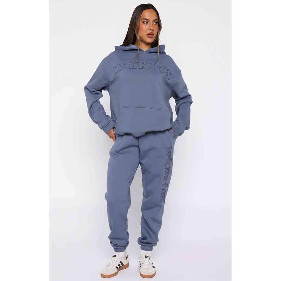 ชุดเซ็ทลำลองผู้หญิง 2 ชิ้น สำหรับฤดูหนาว ผ้าเนื้อหนา ปักลาย ชุดสเวตเตอร์แบบมีฮู้ด ผ้าไนลอน/คอตตอน ทรงหลวม สั่งทำได้