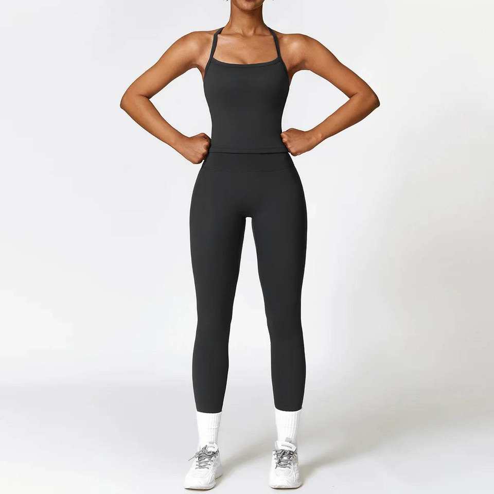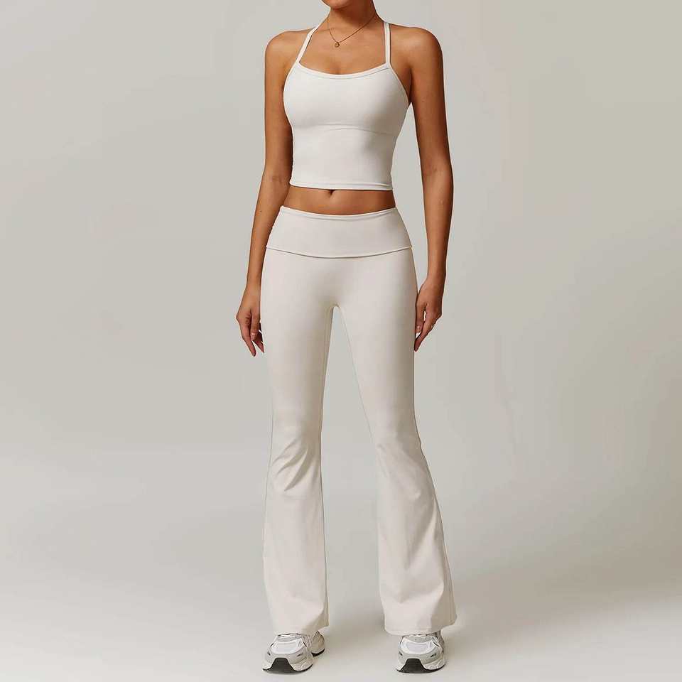 Women's 2-Piece Yoga Set Halter Sport Crop Top and High Waist Flare Leggings XS-XL Fitness Gym Workout Push Clothes