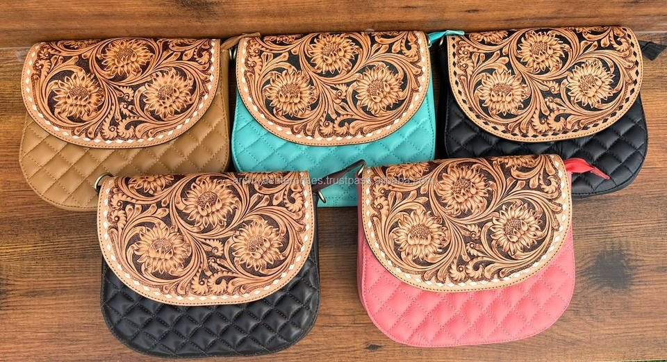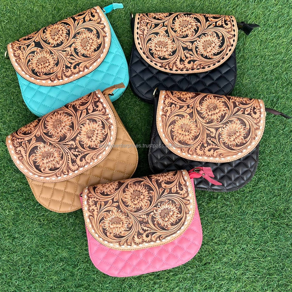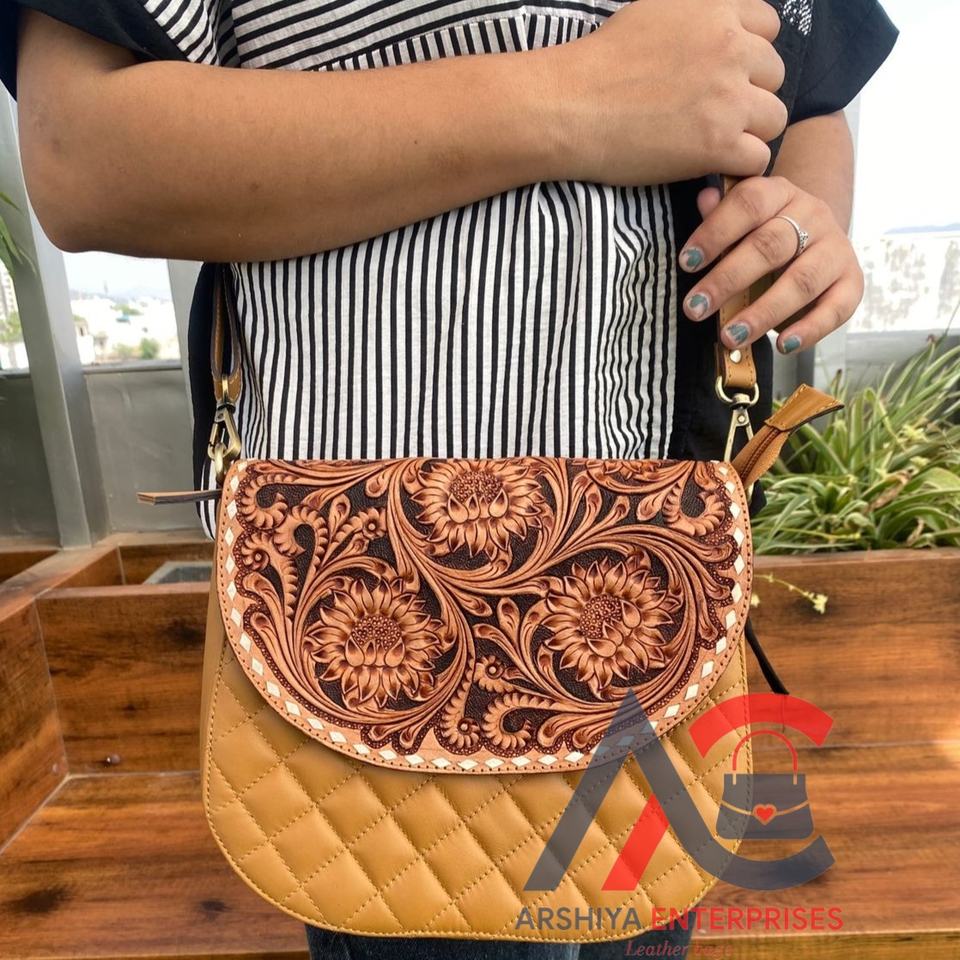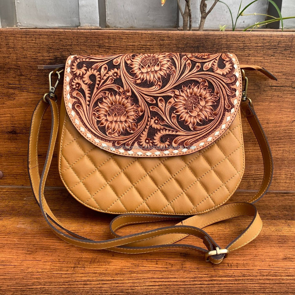 Product name:Hand Tooled Diamond Lattice Crossbody Bag
