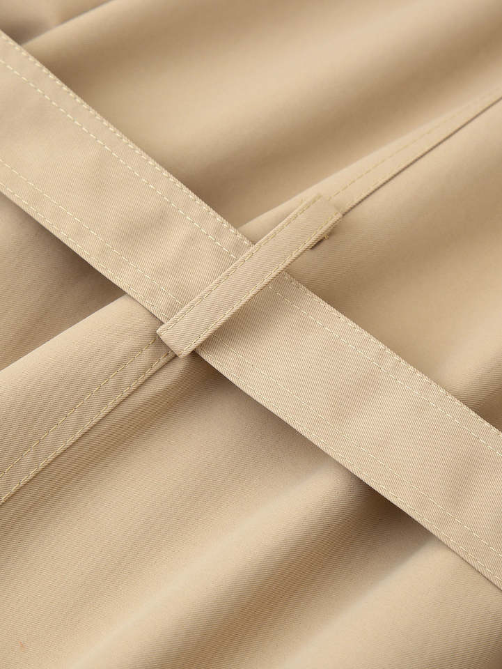 เสื้อคลุมโอเวอร์เชิร์ตสั้นสไตล์วินเทจรักษ์โลกสำหรับผู้หญิง คอลเลคชั่นฤดูใบไม้ร่วงปี 2025 แฟชั่นใหม่ลำลอง แต่งเข็มขัด ปกเสื้อ แขนยาว มีกระเป๋า