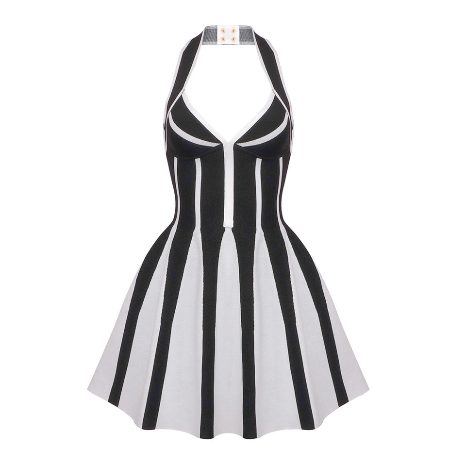 เดรสออกงานกลางคืนสำหรับผู้หญิง คอลเลคชั่นฤดูใบไม้ร่วง 2025 แฟชั่นใหม่ สไตล์ดารา ดีไซน์หรูหรา สายคล้องคอ เปิดหลัง ความยาวปานกลาง ระบายอากาศได้ดี