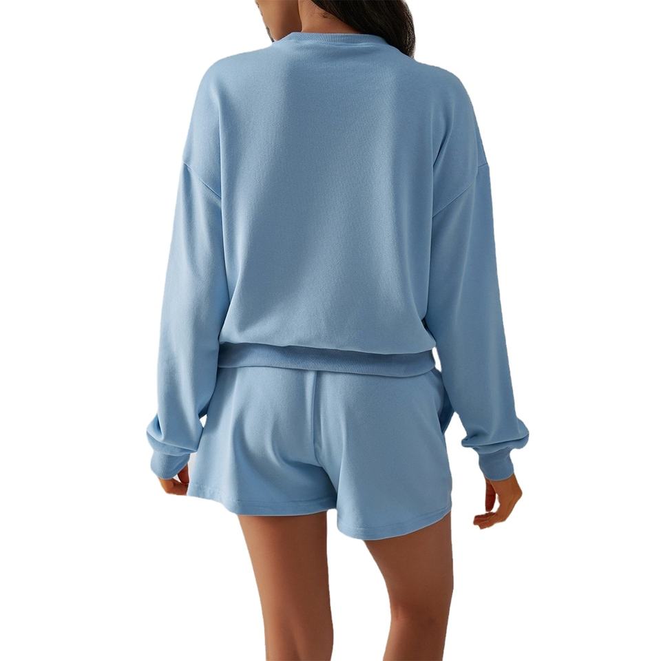 ชุดวิ่งจ๊อกกิ้งแขนยาวสำหรับผู้หญิง, ชุดลำลอง2025สำหรับใส่ในฤดูใบไม้ร่วงพร้อมกางเกงขาสั้นเหนือเข่าชุดเสื้อผ้าเข้าชุดกันแบบสีทึบ