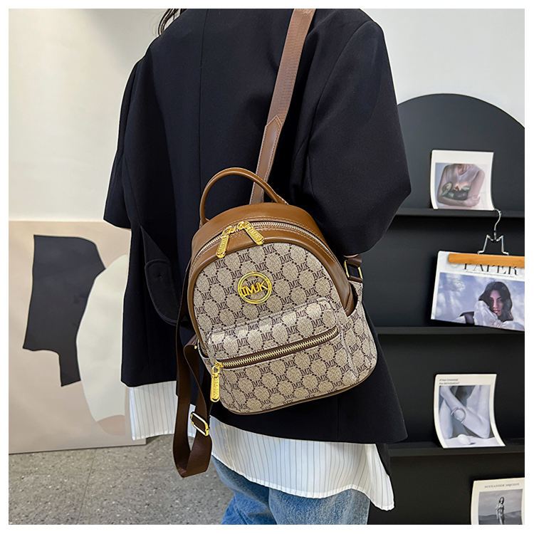 กระเป๋าเป้สะพายหลังขนาดเล็กสำหรับผู้หญิง รุ่นใหม่ปี 2025 แฟชั่นลายเรขาคณิต วัสดุ PU ซิปปิด โครงสร้างโพลีเอสเตอร์ หูหิ้วนุ่ม สายสะพายไหล่ แบบลำลอง