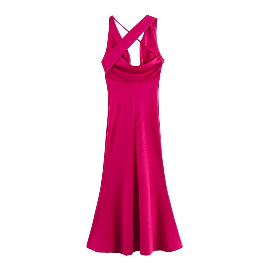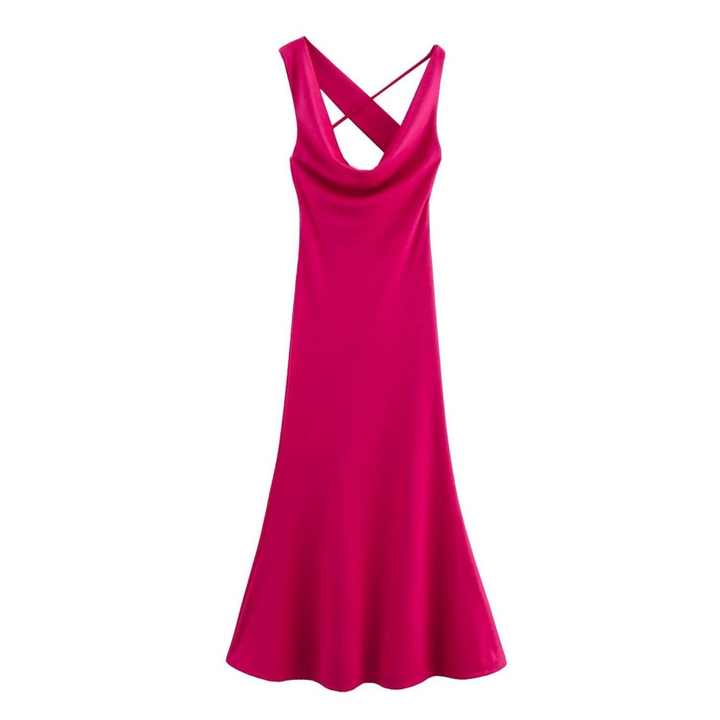 เดรสผู้หญิงทรงเข้ารูป ยาวปานกลาง ผ้าทอธรรมชาติ ระบายอากาศดี สไตล์วินเทจ ไร้แขน เปิดหลัง ดีไซน์เรียบหรู ทันสมัย สำหรับฤดูใบไม้ผลิ ปี 2025