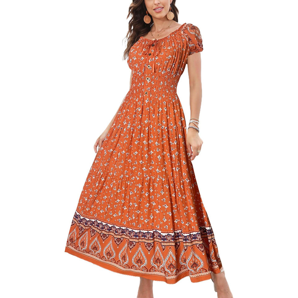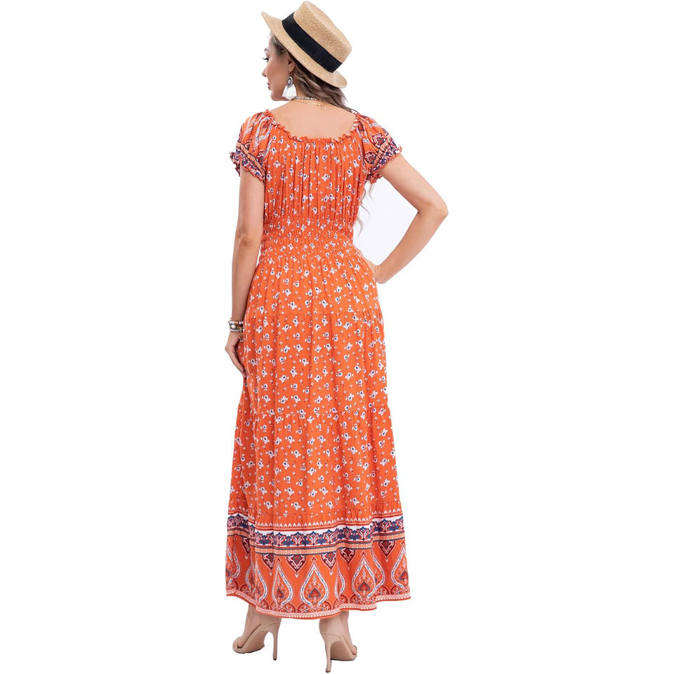 Tessuto ชุดเดรสแม็กซี่ยาวแบบลำลองระบายเป็นชั้นพิมพ์ลายดอกไม้สไตล์โบฮีเมียนแขนสั้น2025ฤดูร้อนของผู้หญิงชุดเดรสลูกไม้ระบายอากาศแบบดิจิตัล