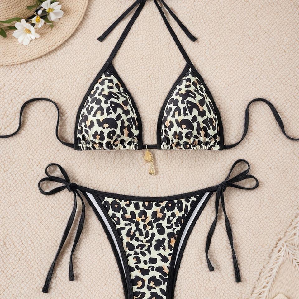 ชุดบิกินี่ไมโครธองลายสัตว์สำหรับผู้หญิง ฤดูร้อน 2025 แบบ 2 ชิ้น พร้อมบราดันทรง ลดราคา