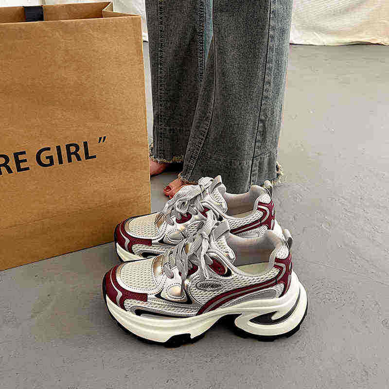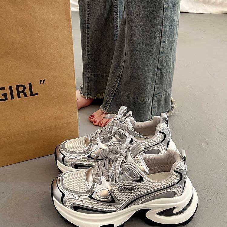 รองเท้าลำลองผู้หญิงปี 2026 พื้นหนา ระบายอากาศได้ดี น้ำหนักเบา พร้อมแผ่นรองพื้นยาง สำหรับเดิน