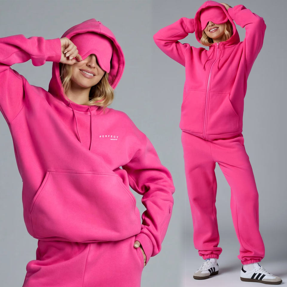 ชุดเซ็ตฮู้ดดี้โอเวอร์ไซส์และกางเกงขาสั้นแฟชั่นฤดูใบไม้ร่วงปี 2026 สำหรับผู้หญิง ชุดลำลองผ้าฟลีซมีโลโก้ แขนยาว เหมาะสำหรับฤดูหนาว