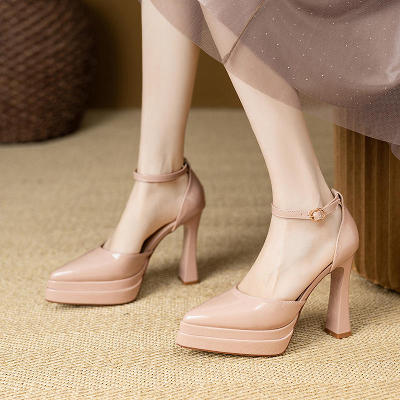 รองเท้าเจ้าสาวแบบแมรี่เจนสไตล์ฝรั่งเศสสำหรับผู้หญิง คอลเลคชั่นฤดูร้อนปี 2026 ส้นหนา ระบายอากาศได้ดี สายไขว้ หนังแท้ แฟชั่นทันสมัย