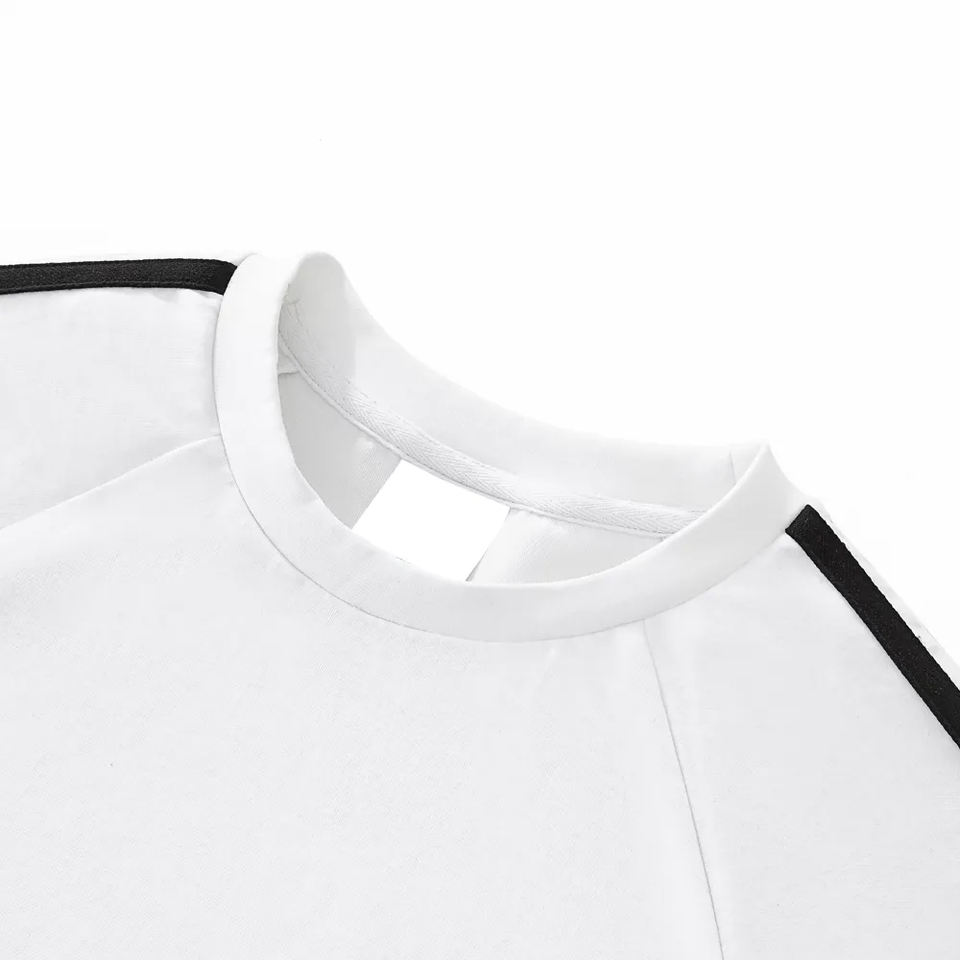 เสื้อยืดผู้หญิงทรงสลิมฟิตสไตล์อเมริกันวินเทจ แขนสั้น ตัดเย็บแบบครอป สีสันตัดกัน แบรนด์เทรนดี้ น้ำหนักผ้า 260GSM สไตล์สาวเปรี้ยว
