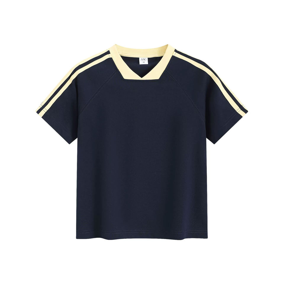 เสื้อครอป260gsm คอวีลายขวางสำหรับผู้หญิงเสื้อครอปสำหรับเล่นกีฬาระบายอากาศได้ดี