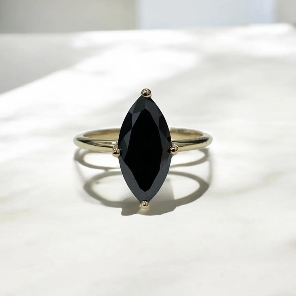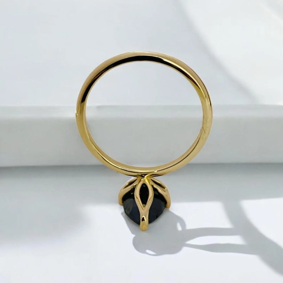 แหวนเพชร3กะรัตสำหรับผู้หญิงแหวนเพชรสีดำคุณภาพ AAA สวยตามธรรมชาติ14K สีเหลืองทองสีดำ