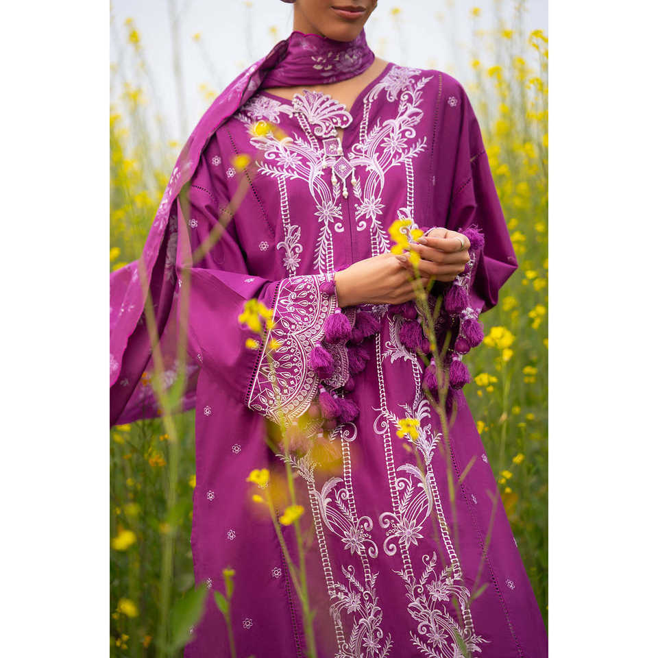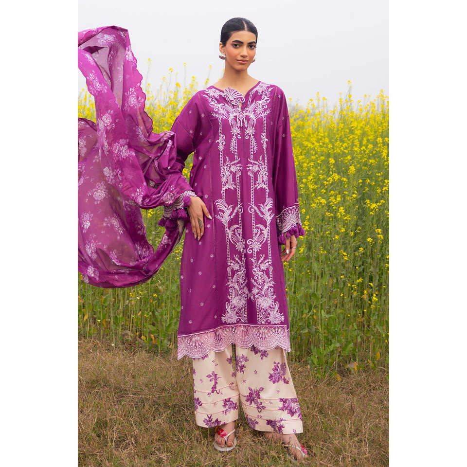 ชุดสูทผ้าลอนปักลาย 3 ชิ้นสำหรับผู้หญิง พร้อมกางเกงพิมพ์ลายและขอบปักลาย รุ่น CL-52277