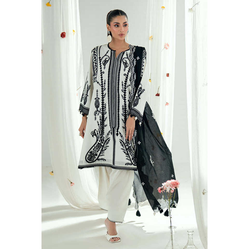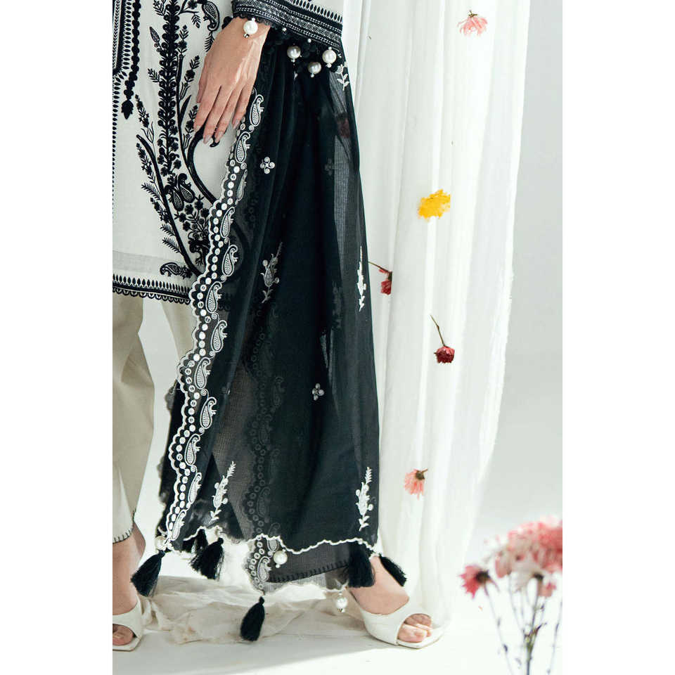 ชุดสูทผ้าลอนปักลาย 3 ชิ้นสำหรับผู้หญิง รุ่น DN-62032 พร้อมผ้าคลุมไหล่ปักลาย ประกอบด้วยเสื้อ กางเกงขายาว และผ้าคลุมไหล่