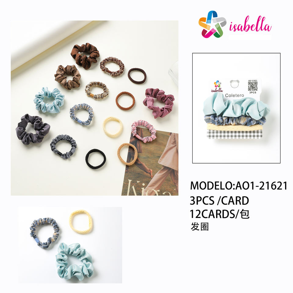Women's 3-Piece Hair Tie Set A01-21621 Fashionable Trendy Cute Accessory Stylish Elegant Decorative Colorful Elastic Hairbands