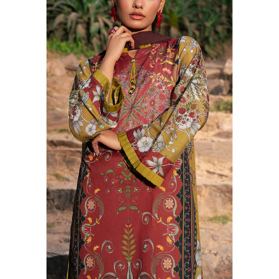 ชุดสูทผ้าลอนพิมพ์ลาย 3 ชิ้นสำหรับผู้หญิง พร้อมผ้าคลุมไหล่ชีฟอง รุ่น SD-52207