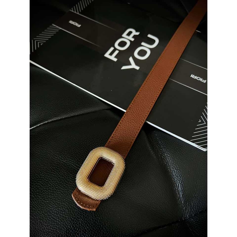 เข็มขัดหนังวัวหัวเข็มขัดทอง 3 ซม. สำหรับผู้หญิง