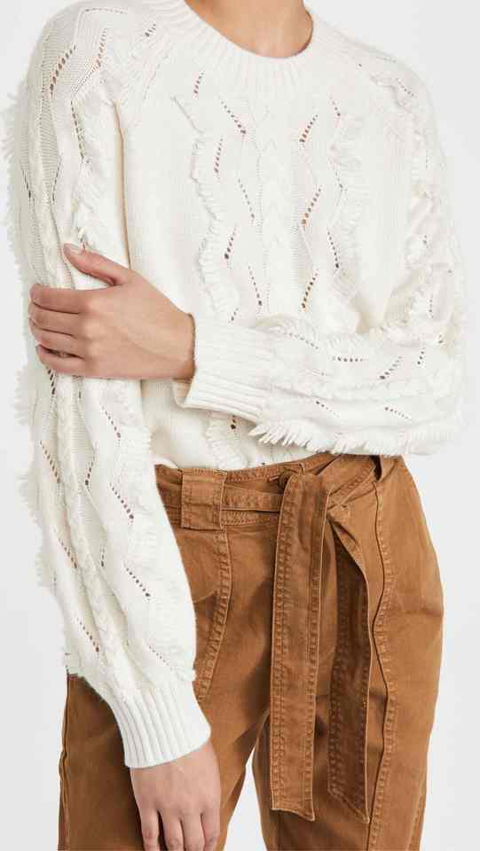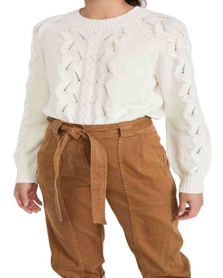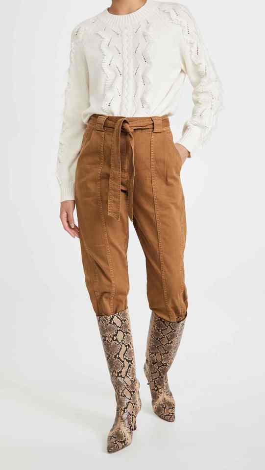 เสื้อสเวตเตอร์ผูกเชือกมีระบายคอพร้อมริบบิ้นสีน้ำตาลอ่อน
