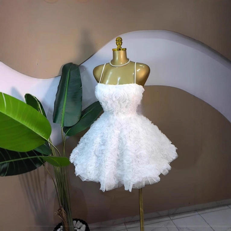 เดรสสั้นลายดอกไม้ 3 มิติ สายเดี่ยวผูกหลัง แต่งระบายฟูฟ่อง สไตล์เจ้าหญิง สำหรับงานปาร์ตี้ แฟชั่นผู้หญิง Sehe