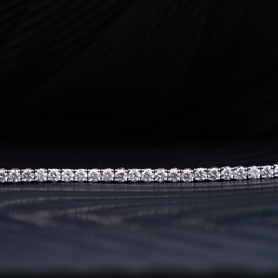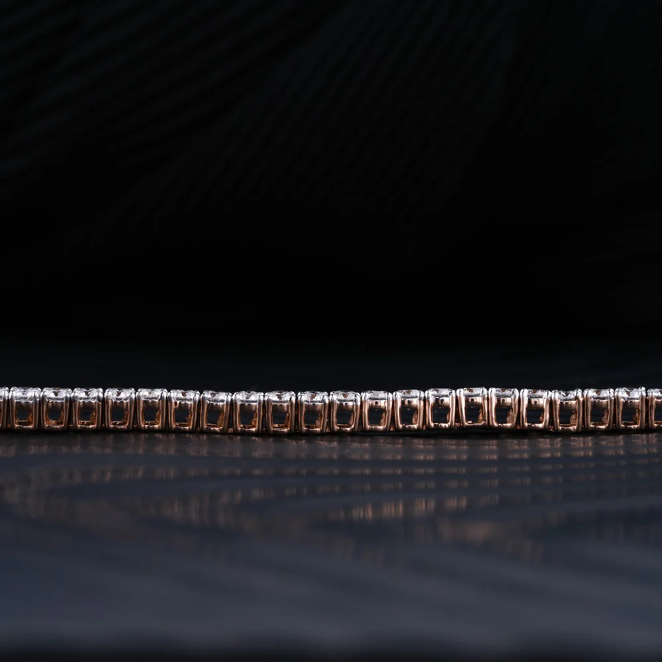 กำไลข้อมือเพชรทรงกลม 4 กะรัต สำหรับผู้หญิง ผลิตจากเพชรเลี้ยงในห้องปฏิบัติการ ทองคำชมพู 14K ความใสระดับ VS สำหรับเครื่องประดับผู้หญิง กำไลเพชรเทนนิส