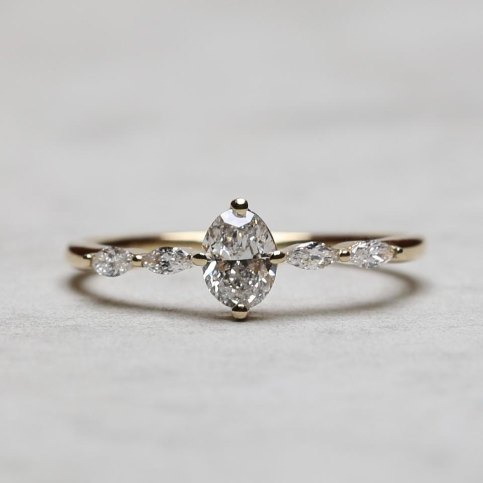 แหวนหมั้นเพชร CZ ทรงวงรีตัดขนาด6x4มม. สำหรับผู้หญิงเครื่องประดับงานแต่งสีทองสวยงามสำหรับงานปาร์ตี้สามารถปรับแต่งได้