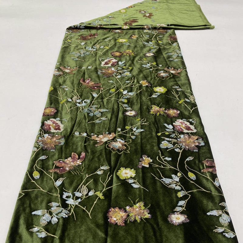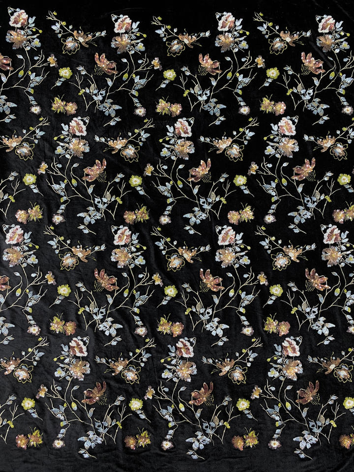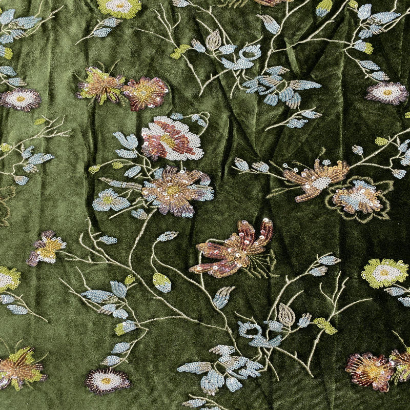 งานฝีมือเย็บปักถักร้อย:ผ้ากำมะหยี่ปักเลื่อมหลากสีพื้นด้านล่าง