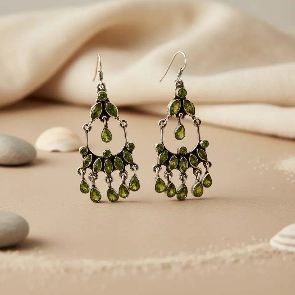 ต่างหูเงินแท้ 925 แบบห้อยระย้าประดับเพอริดอท สำหรับผู้หญิง เครื่องประดับแฟชั่น