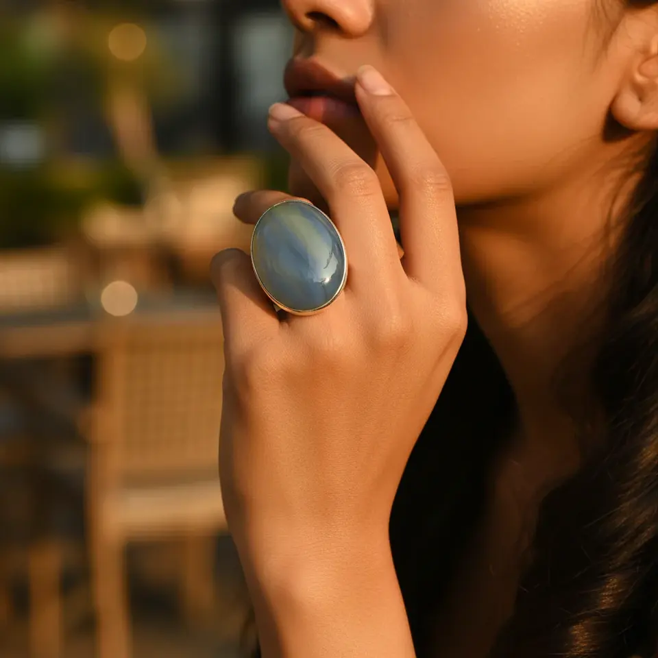 แหวนเงินแท้ 925 ประดับด้วยพลอยชาลเซโดนีทรงรี ดีไซน์หรูหรา สำหรับผู้หญิง