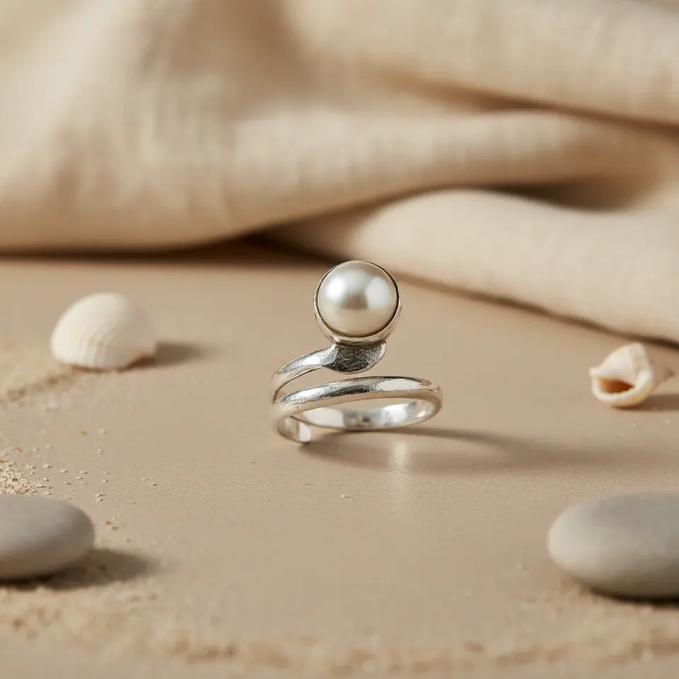 แหวนเงินแท้ 925 ประดับมุก ลายวน ดีไซน์หรูหรา ไอเดียของขวัญสำหรับผู้หญิง