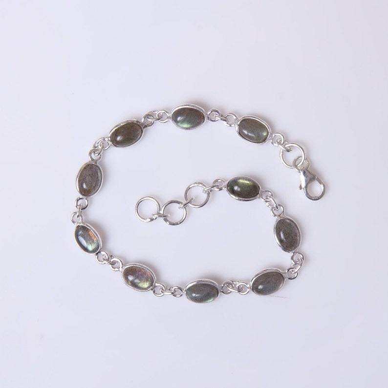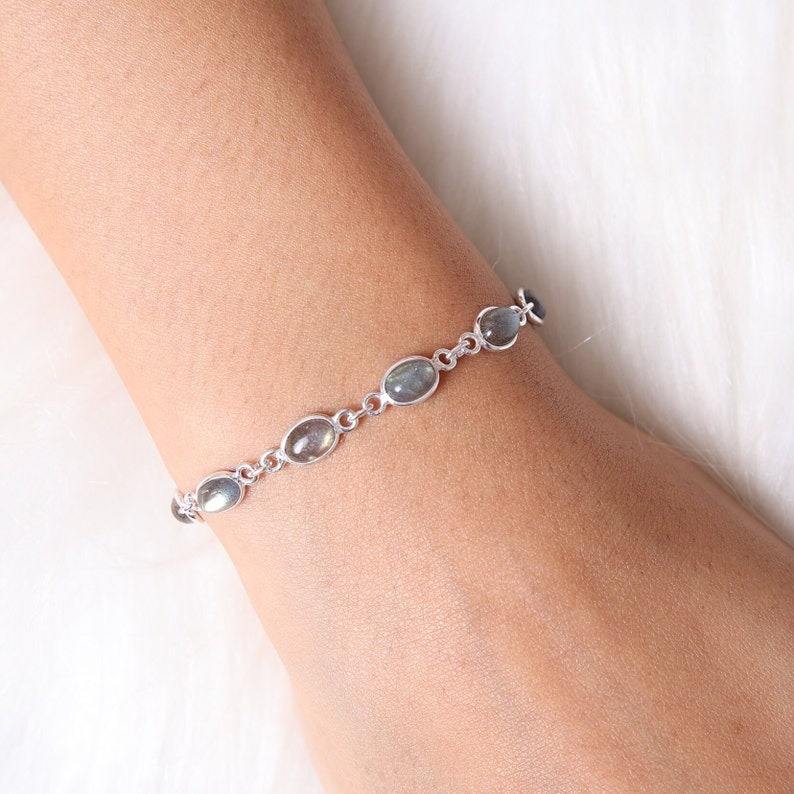 สร้อยข้อมือ925สไตล์โบโฮทำด้วยมือของผู้หญิงสร้อยข้อมือเทนนิสหินลาบราดอไรต์ทำด้วยมือเป็นของขวัญเครื่องประดับคลาสสิก