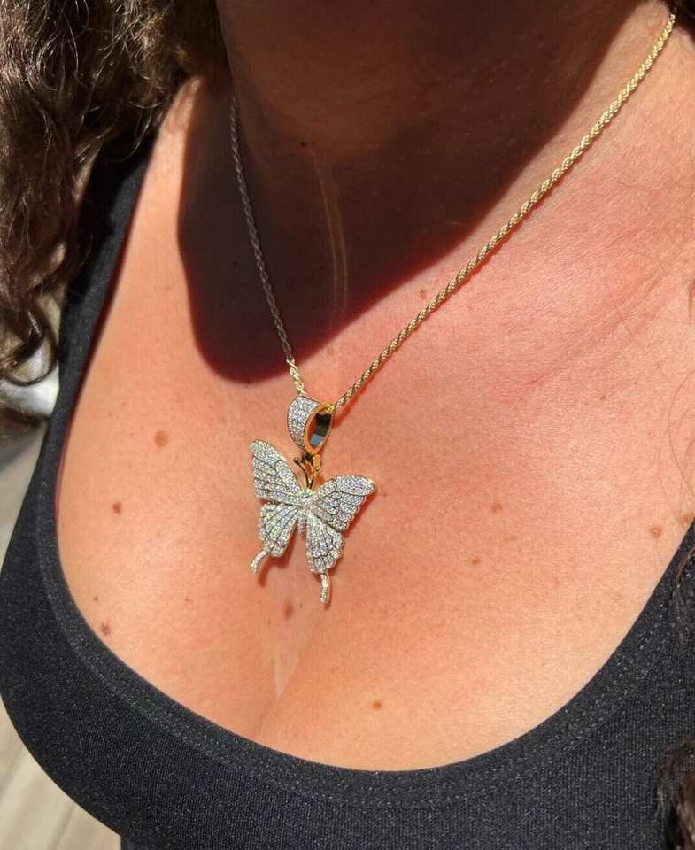 จี้ผีเสื้อเงินแท้ 925 ประดับมอยส์ซาไนต์ทรงเหลี่ยมเจียระไนแบบบริลเลียนต์ ชุบโรเดียม ชุบทอง 14K สไตล์ฮิปฮอป