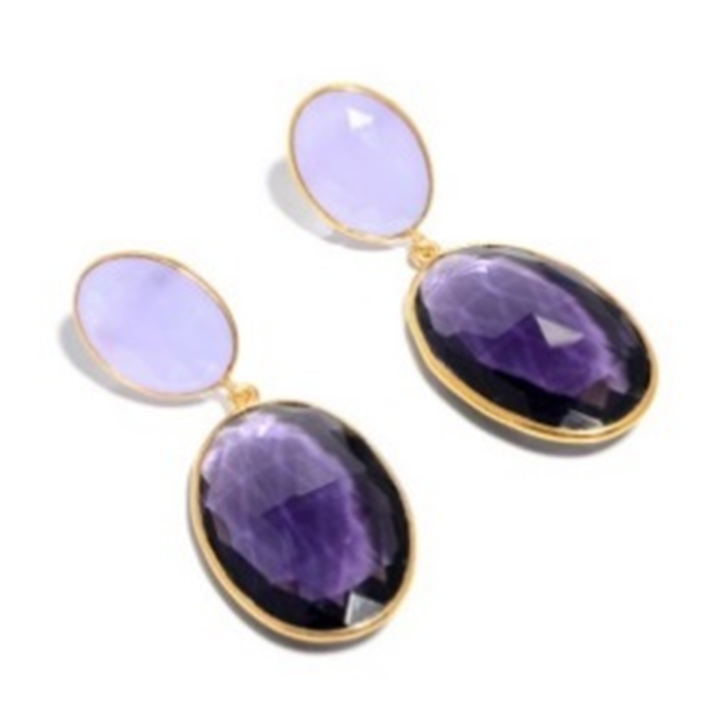 ต่างหูเงินแท้ 925 ประดับพลอยไฮโดรอะมีทิสต์สีม่วงลาเวนเดอร์ทรงรีเจียระไน ชุบทอง เหมาะสำหรับงานแต่งงาน