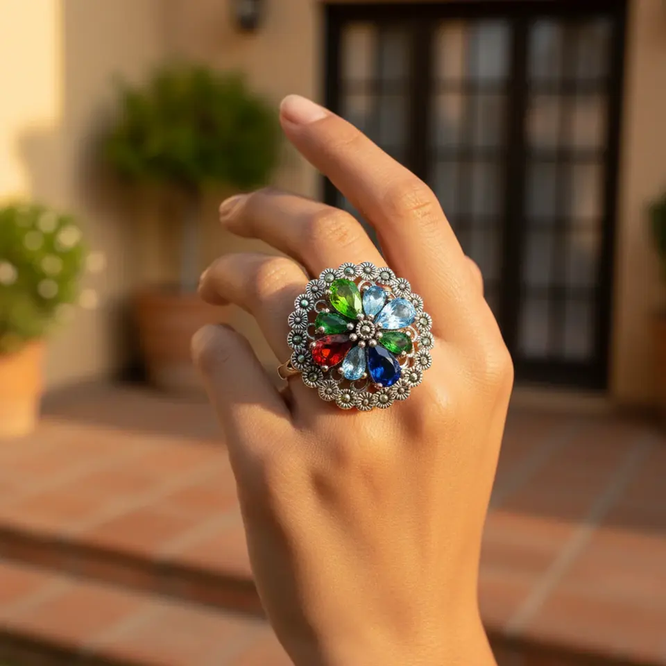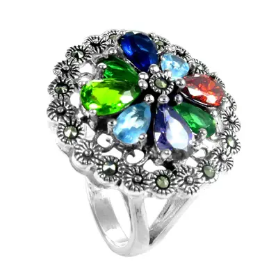 แหวนเงินแท้ 925 ประดับพลอยรูปดอกไม้ สำหรับผู้หญิง เครื่องประดับแฟชั่น