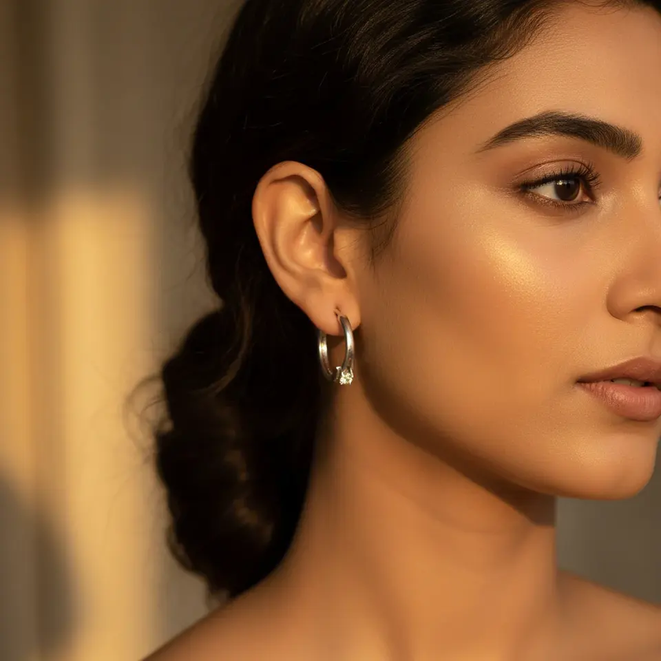 ต่างหูห่วงเงินแท้ 925 ชุบทอง 18K ลายดอกไม้ทันสมัย ประดับเพชรและทับทิม เหมาะสำหรับงานหมั้น งานแต่งงาน และวันครบรอบ
