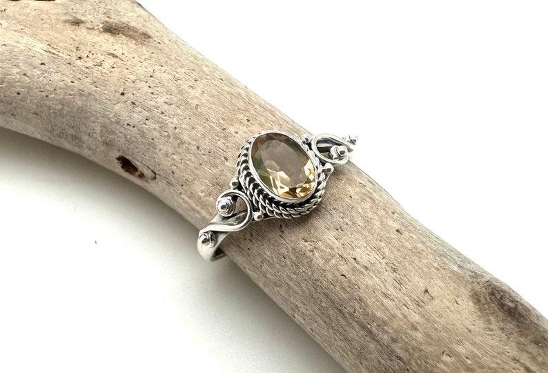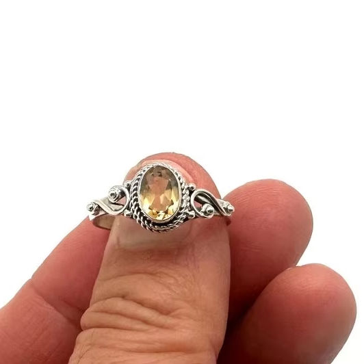 แหวนเงินแท้ 925 ประดับพลอยซิทรินทรงรี ชุบโรเดียม สไตล์โบฮีเมียน ทันสมัย ทำมือ เหมาะสำหรับเป็นของขวัญงานแต่งงานและงานปาร์ตี้