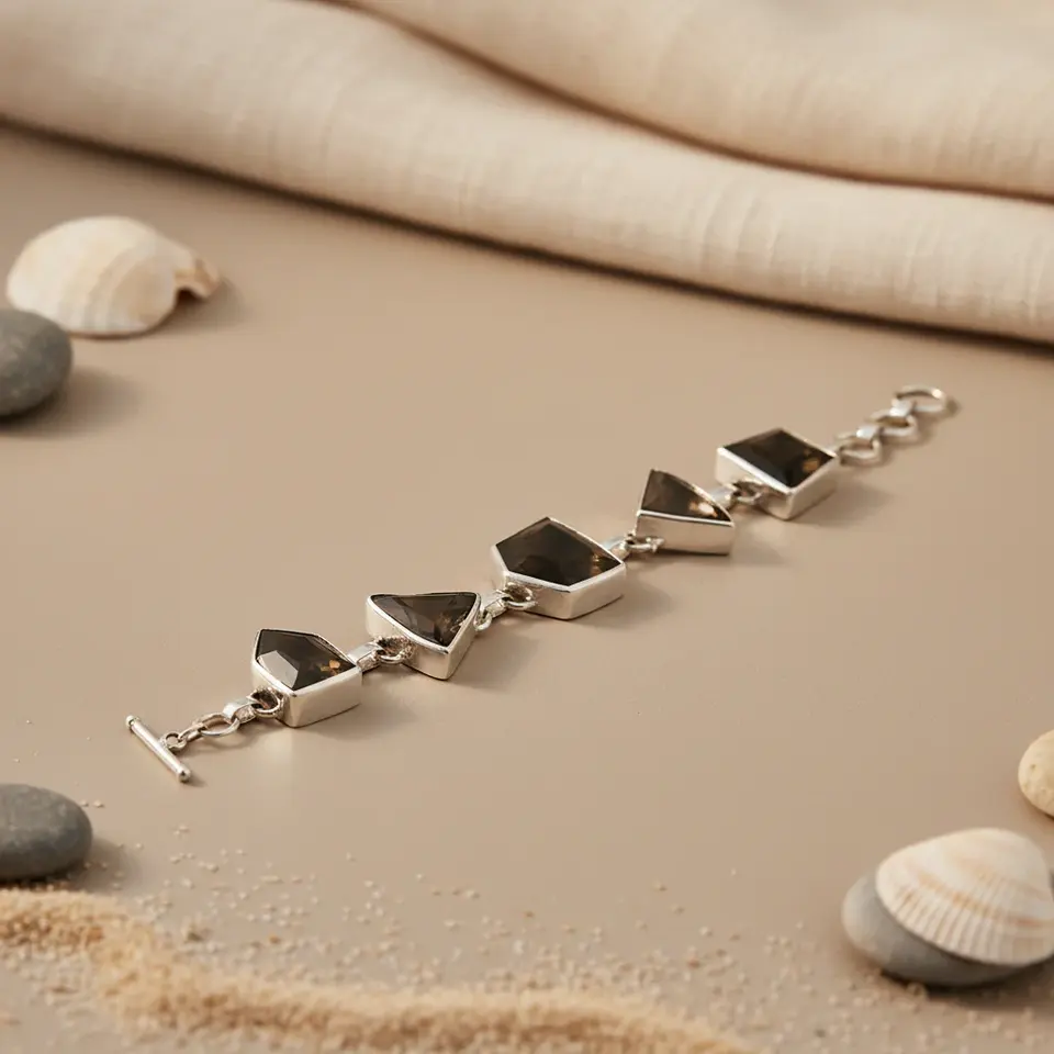 สร้อยข้อมือเงินแท้ 925 ประดับด้วยควอตซ์สโมกกี้ สำหรับผู้หญิง เครื่องประดับแฟชั่นแบบลูกปัด