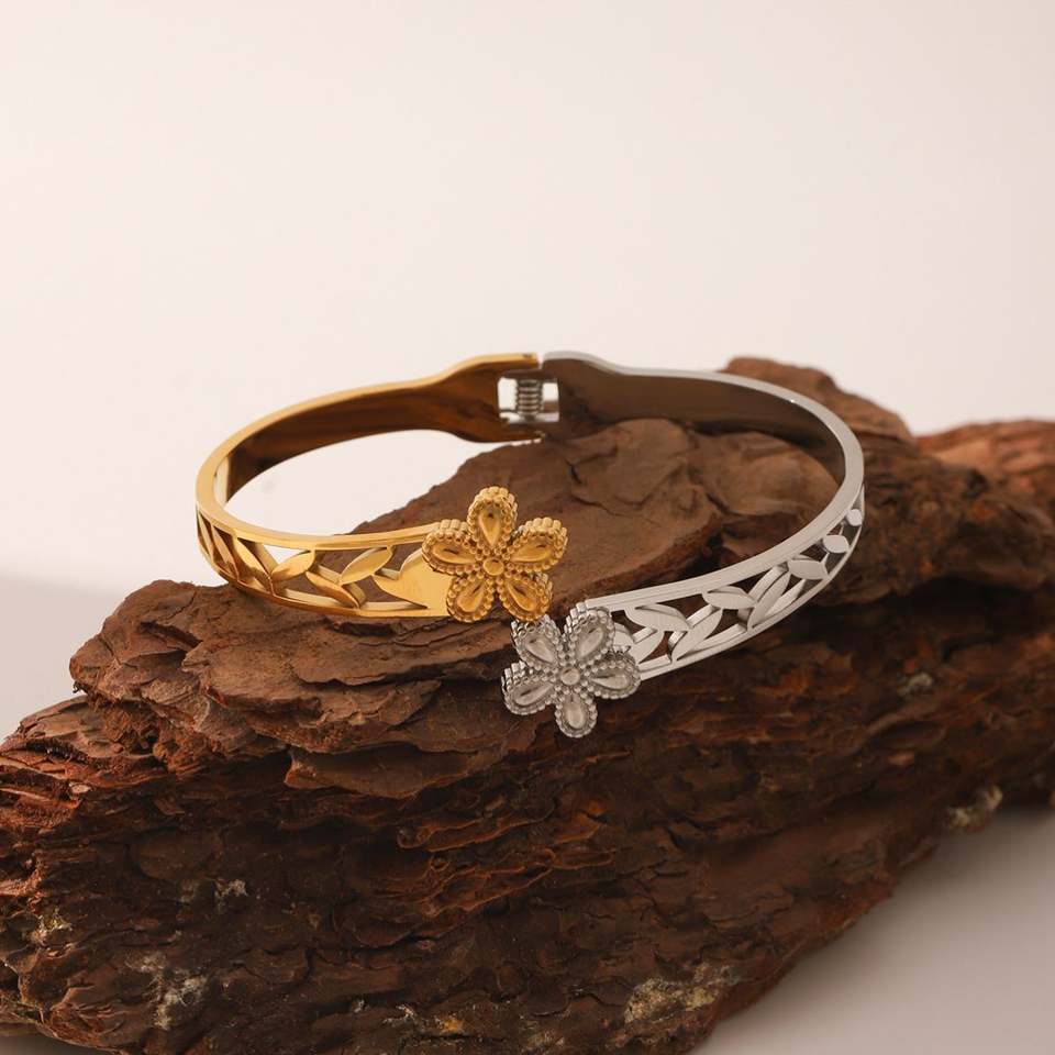 สร้อยข้อมือเหล็กไทเทเนียมเกรดสูงสำหรับผู้หญิงสร้อยข้อมือสแตนเลสลายดอกไม้ห้าใบไม่ซีดจาง