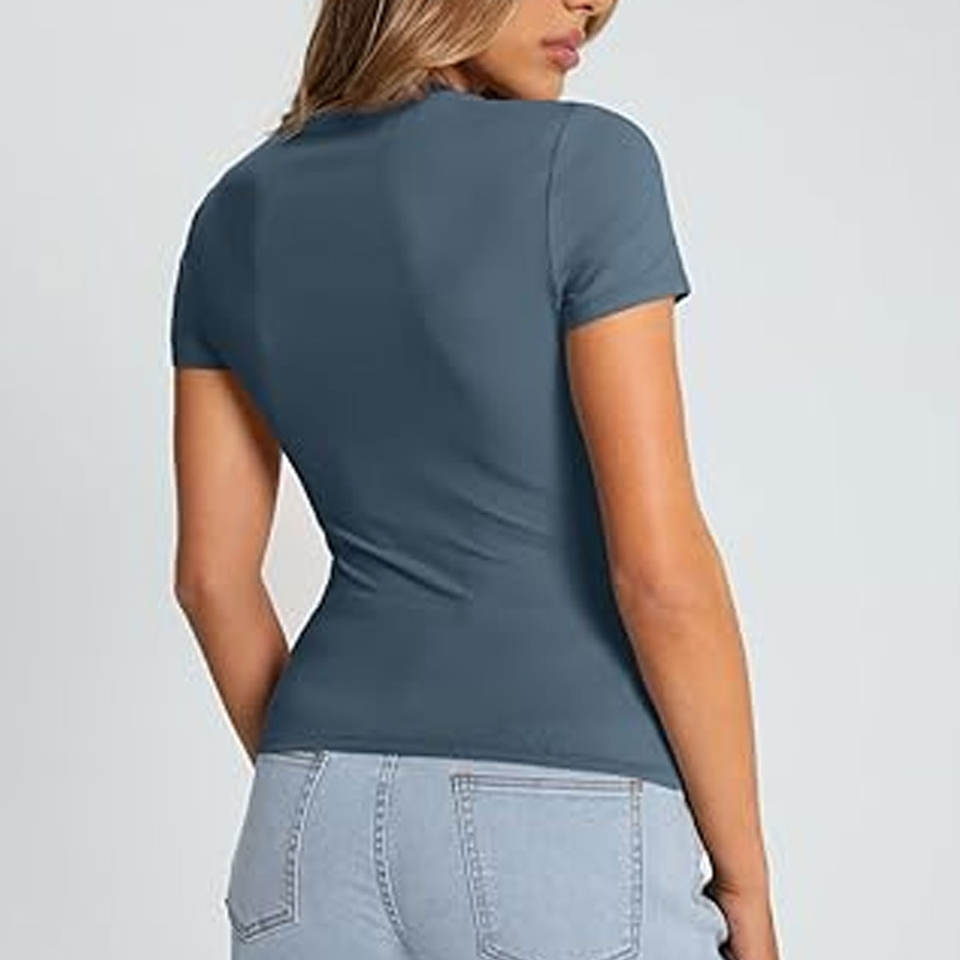 เสื้อยืดคอกลมแขนสั้นสำหรับผู้หญิงเสื้อยืดออกกำลังกายโยคะผ้าฝ้ายนุ่มใส่ได้พอดีตัว