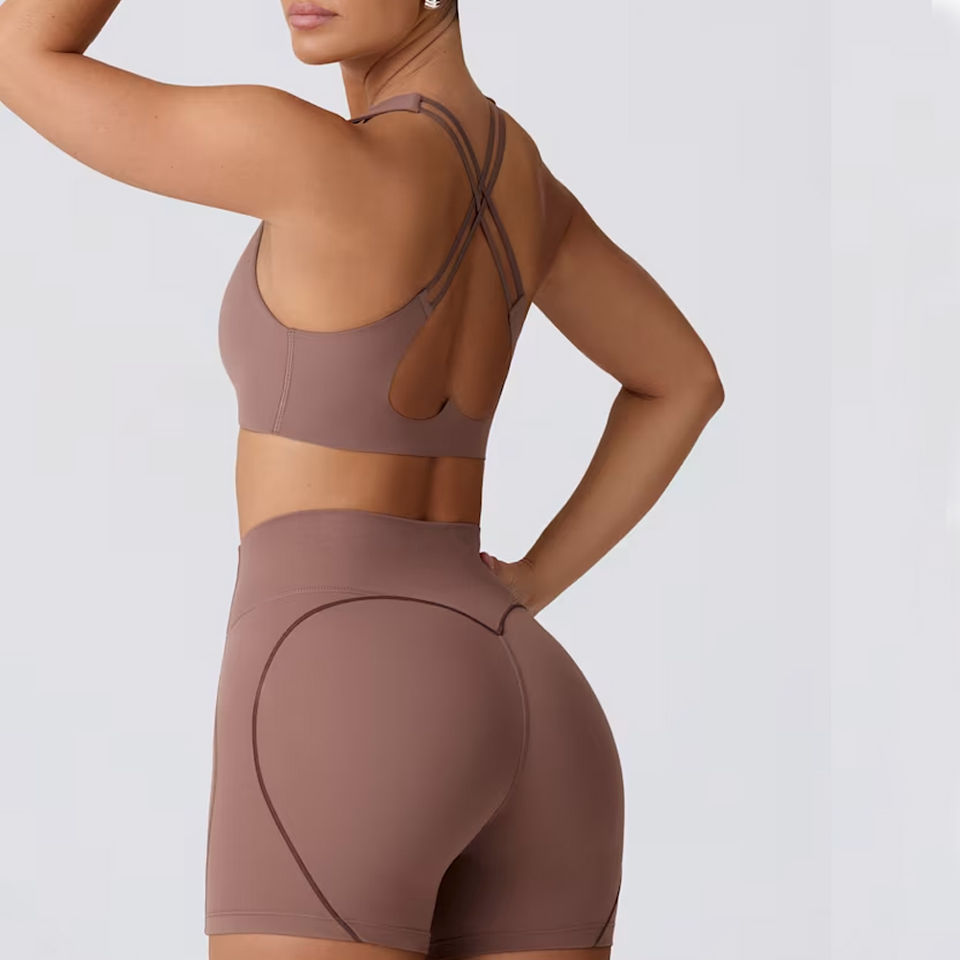 ชุดออกกำลังกายผู้หญิง กางเกงขาสั้นกีฬาแบบรัดรูป ชุดโยคะ ขายส่ง ชุดกีฬาสำหรับออกกำลังกาย ไซส์ใหญ่ เสื้อชั้นในกีฬาแบบสั้น ลายเรียบ