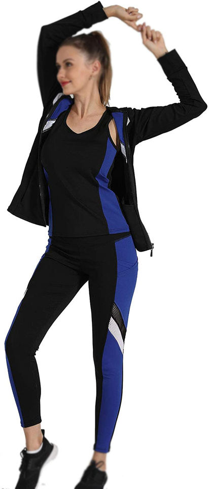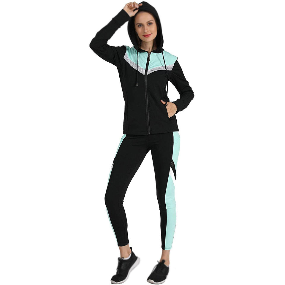ชุดวอร์มพิมพ์ลายลำลองมีฮู้ด3ชิ้นสำหรับผู้หญิง | ชุดออกกำลังกายในยิมเสื้อแจ็คเก็ตและกางเกง