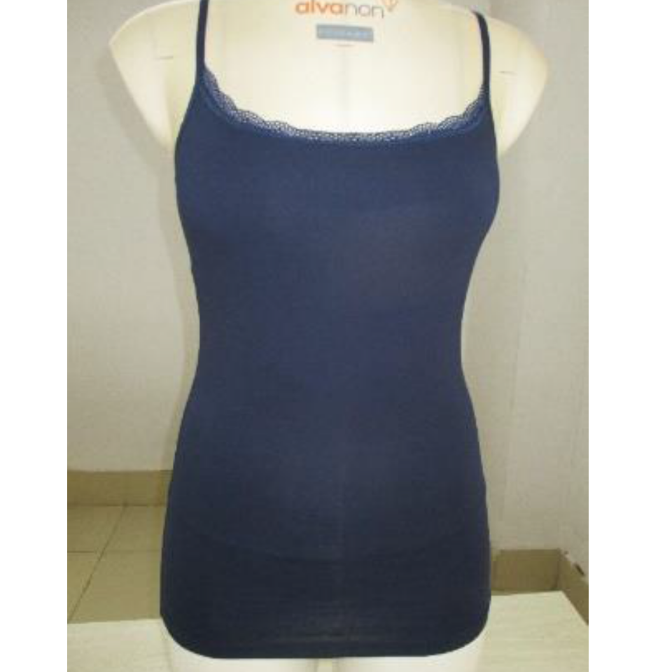 เสื้อกล้ามปรับได้สำหรับผู้หญิง ผ้าฝ้าย 95% ผสมอีลาสเทน 5% ทอแบบถัก แต่งลูกไม้ คอติดกระดุม แห้งเร็ว สีพื้น ใส่สบาย BD